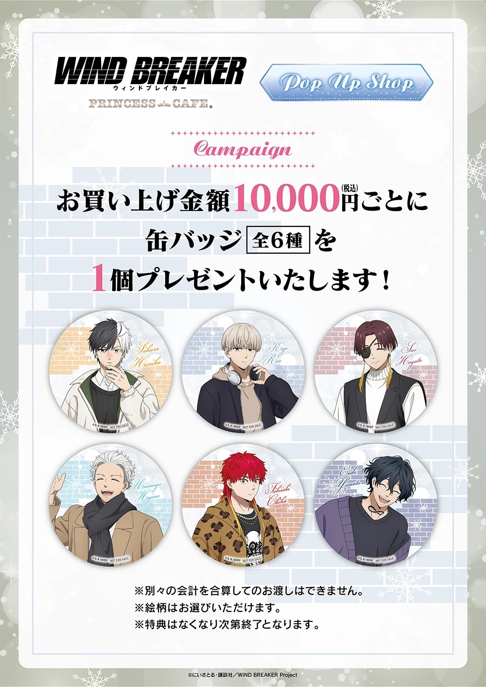 期間中に「TVアニメ『WIND BREAKER』(冬衣装Ver)」の商品をご予約・ご購入いただいたお客さまを対象に「ノベルティ缶バッジ」をプレゼント!